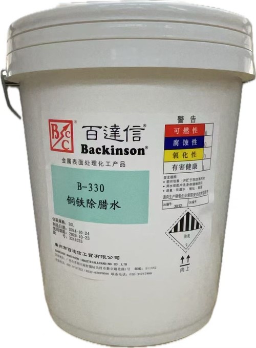 Buffing compounds remover B-330 is an alkaline liquid detergent suitable for cleaning the surface of general metals including steel, copper, brass, gold, silver, aluminum, nickel, zinc and zinc die casting.