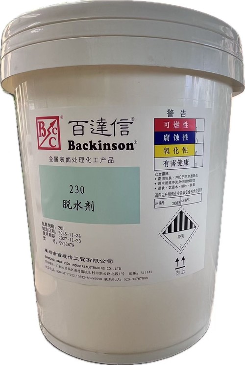 Water Shedder No.230 is a new concept in metal drying. After dipping metal parts in this product, followed by a simple hot water rinse, water is immediately displaced and the metal parts are virtually dry without stains and without the need for further treatment. Usually, no special drying equipment or media are necessary. Organic solvents or other flammable liquids are not required for drying with Water Shedder No.230.